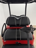 2020 Club Car Tempo Electric with a new Red Body, Custom 12" Wheels, and Black Seat Cover with White Pin Striping. This car has been fully serviced and is ready to go! Ask us about any additional accessories!